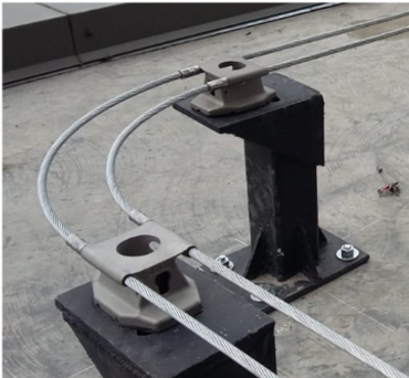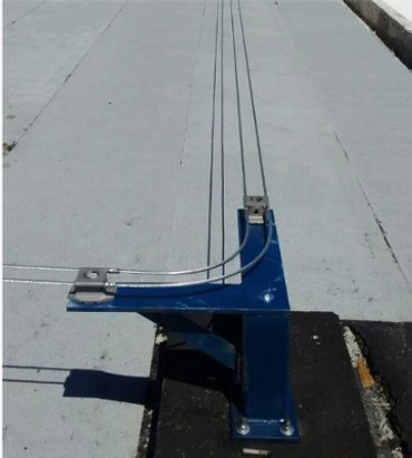 It is a galvanized steel support that is placed as an intermediate support in the sections of each life line. It is installed at a maximun distance of 15 meters.Es un soporte de acero galvanizado que se coloca como apoyo intermedio en los recorridos de cada tramo de línea. Se coloca a cada 15 m como máximo.