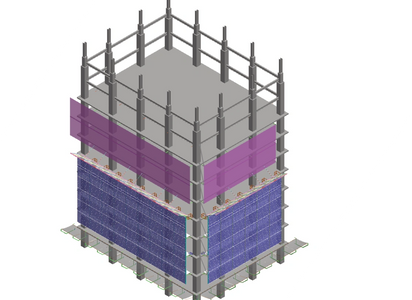 To move from one leve to the other it has an autoelevation and folding manual system that does not depend on the tower crane, and also allows passage for material in specific points.